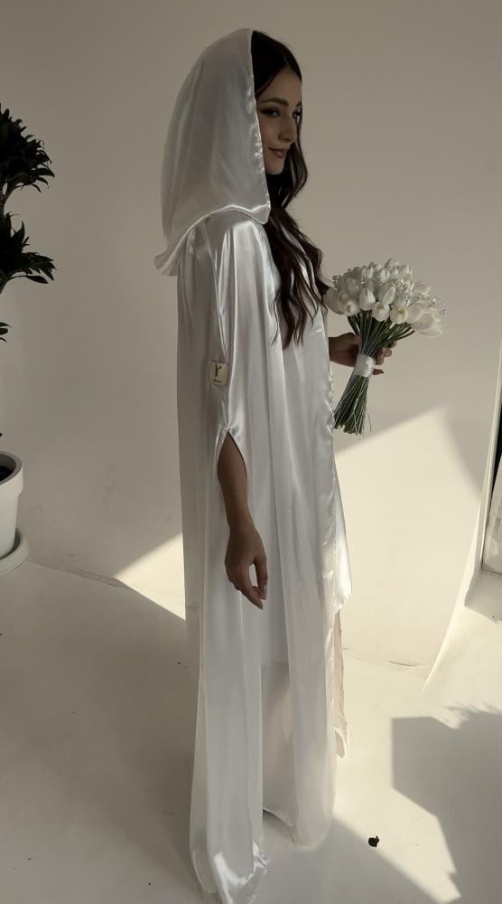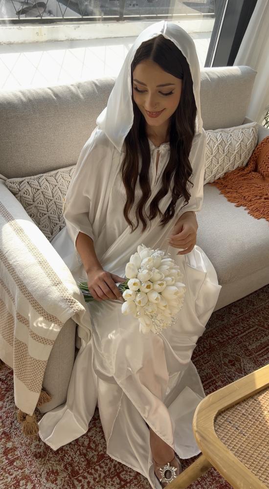 عباية عروس بيضاء من الساتان: